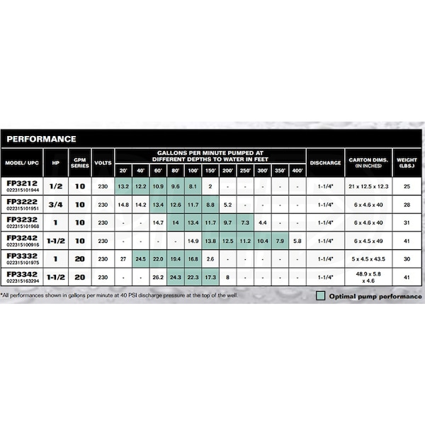 • Pumps up to 1338 GPH @ 100' Depth - (40 PSI)